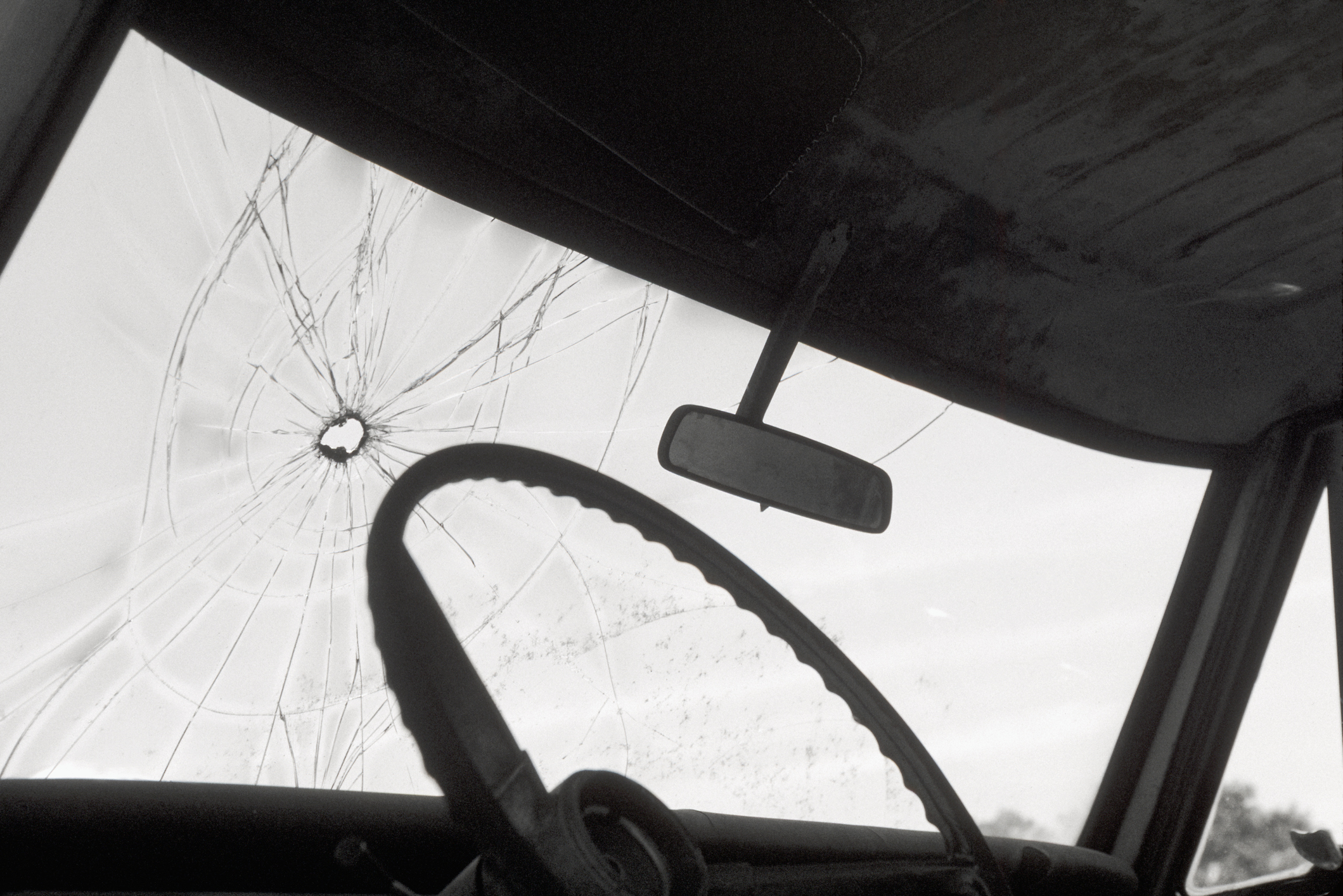 Imagem: vidro frontal de carro quebrado